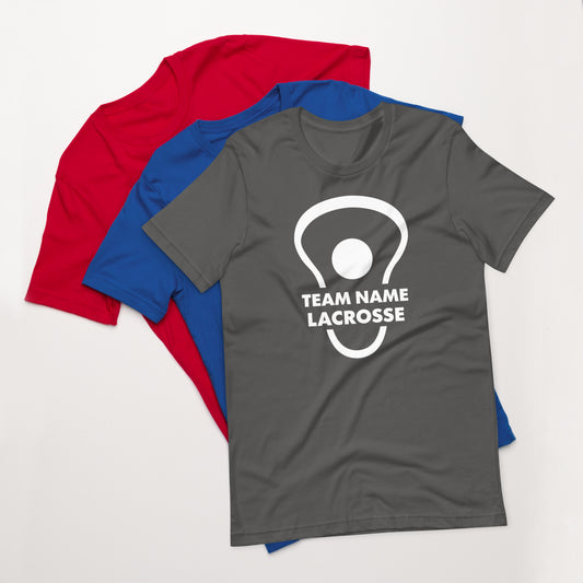 Personalize lacrosse School name an Mascot Unisex t-shirt