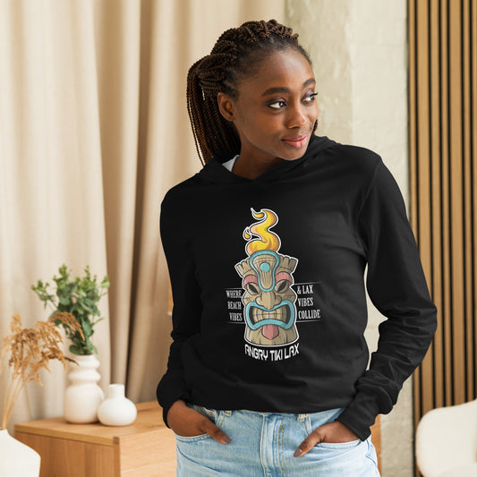 Angry Tiki Lacrosse slogan Hooded long-sleeve tee